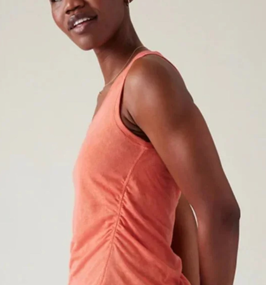 ATHLETA Breezy Ruched Tank, Coral Medium NEW! A3