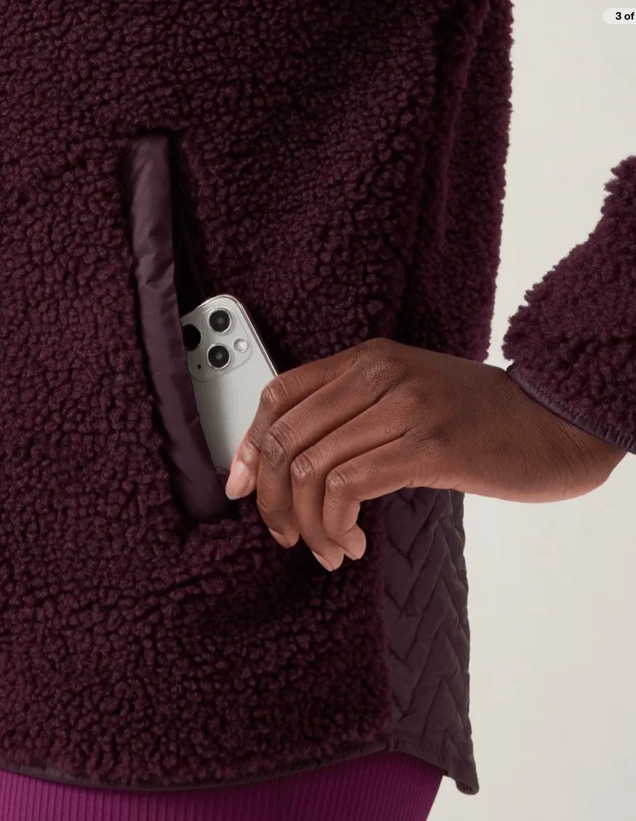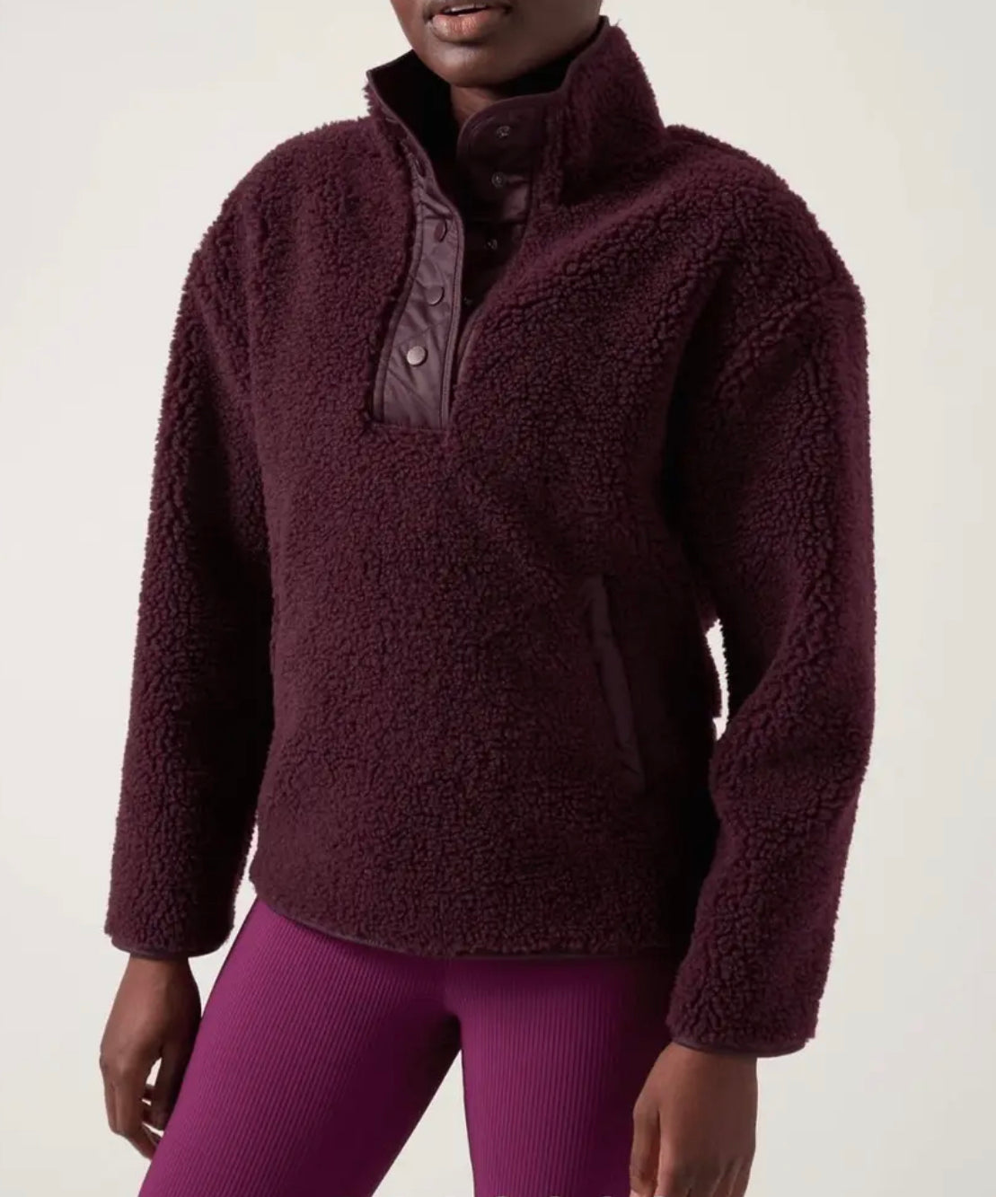 ATHLETA Cozy Sherpa Snap Sweatshirt, New! Large B6