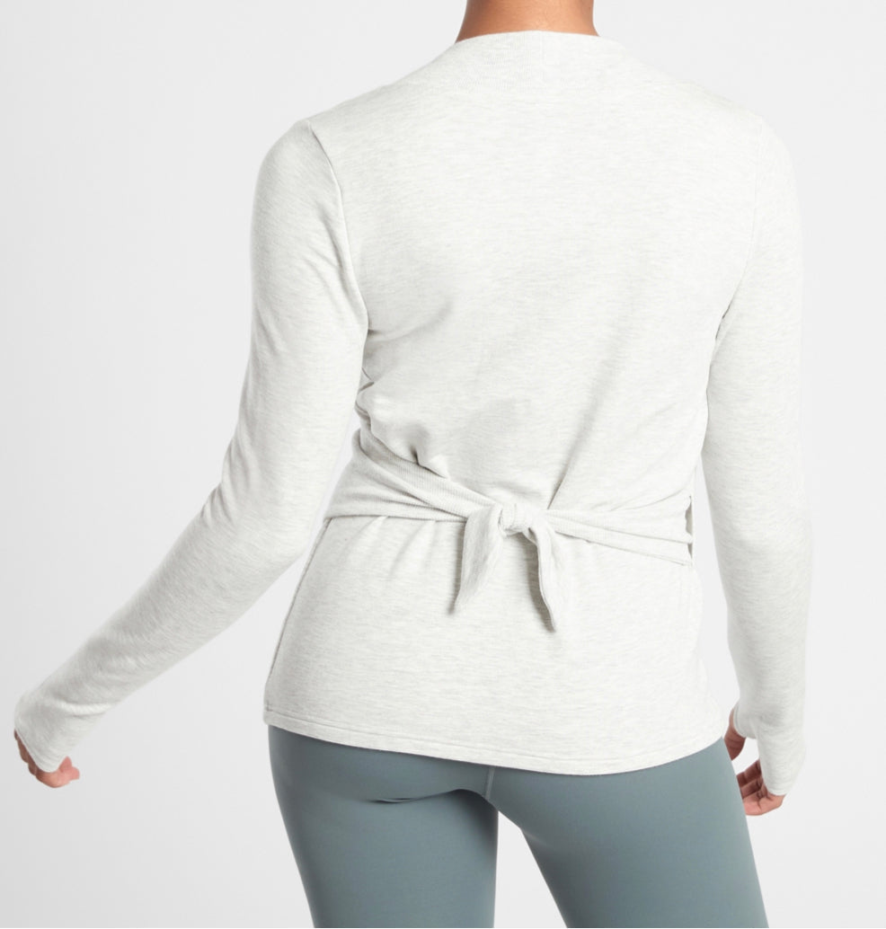 ATHLETA Poise Wrap Sweatshirt, Light Heather Grey, XL New! B7