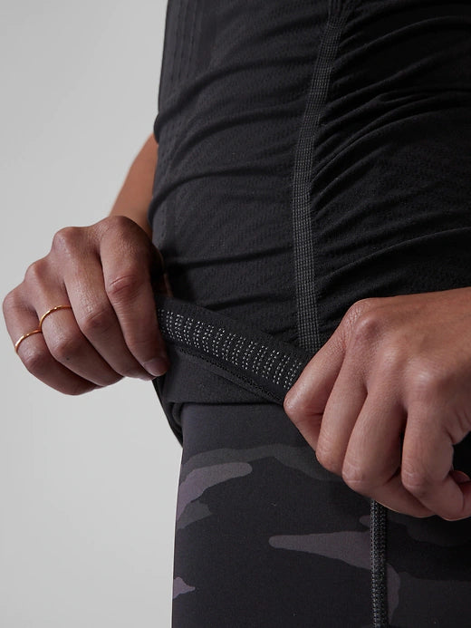 - FAVE: Internal hem-grippers provide an amazing stay-put fit during your workouts