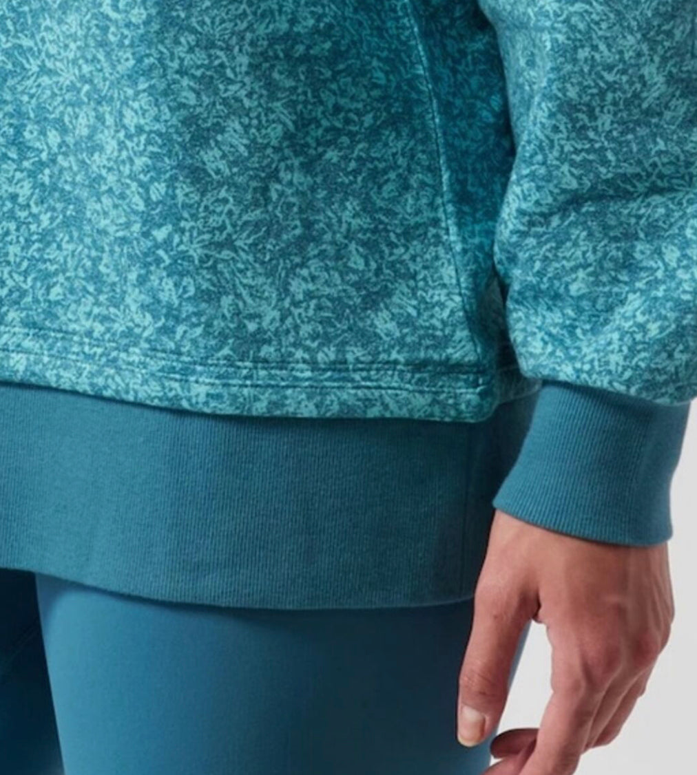 FOR: Life on and off the mat FEEL: Organic cotton Sundown fabric is soft and lightweight FAVE: Adjustable drawcord on hood for a custom fit BREATHABLE: Airflow moves easily through the garment WRINKLE-RESISTANT: Packable fabric that airs wrinkles out easily Machine wash inside out Imported. Oversized, fits extra roomy