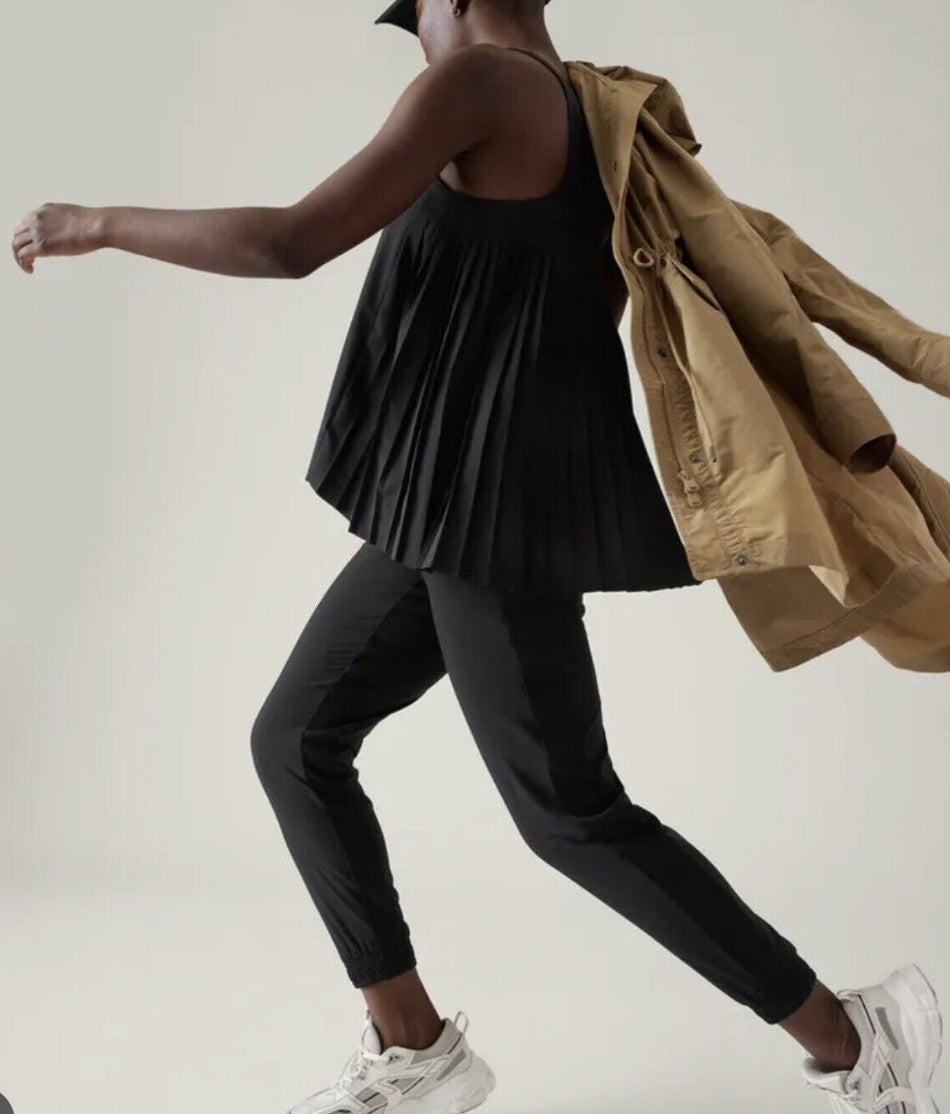 ATHLETA Swing Forward Pleated Tank, Black, XS NEW! (A1)