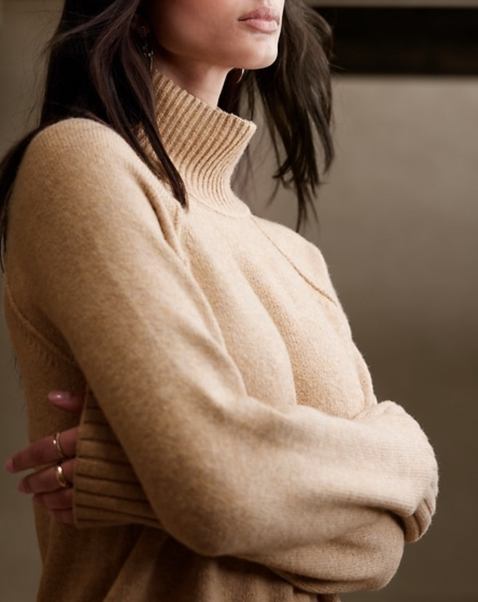 Banana Republic Knee Length Turtleneck Sweater Dress, Beige, Large B15