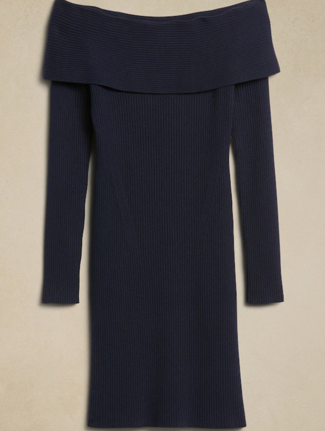 BANANA REPUBLIC OFF-SHOULDER MINI SWEATER DRESS