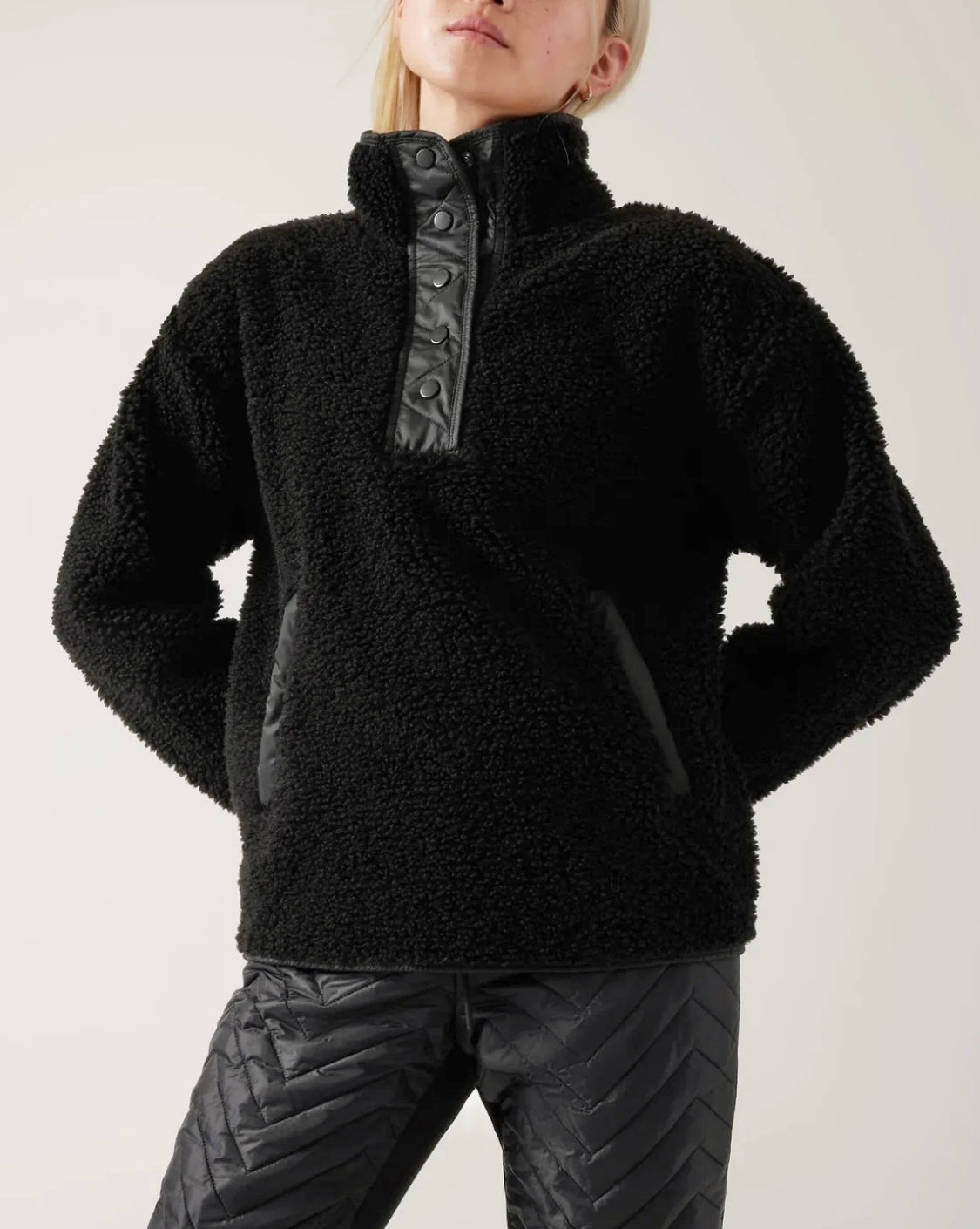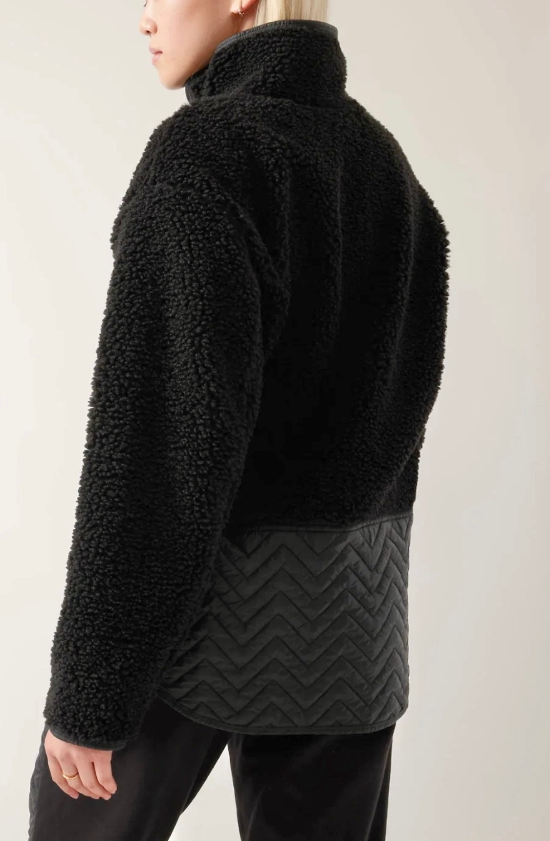 ATHLETA Cozy Sherpa Snap Sweatshirt, Black Small NEW! B6