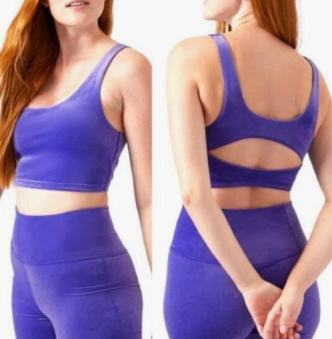 ATHLETA Velvet cutout Crop, Purple, Large New! B8