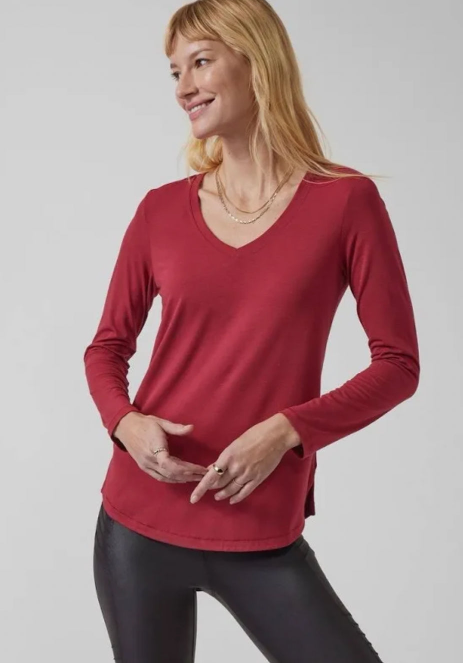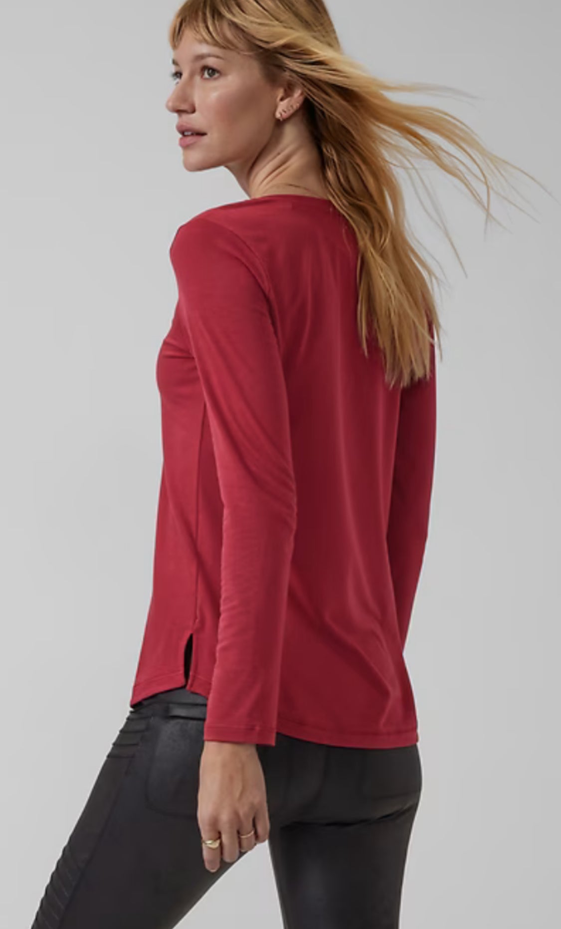 ATHLETA Essential V Neck Top, Red XL NEW! A3