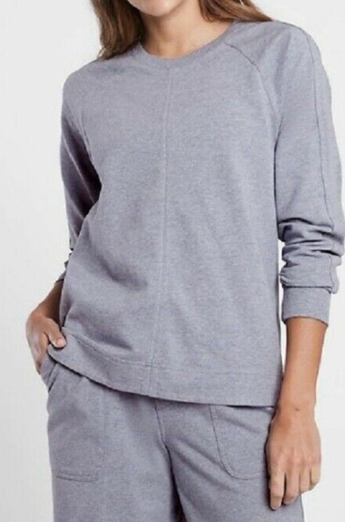 ATHLETA Farallon Swing Sweatshirt, Heathered Blue, XL NEW! B9