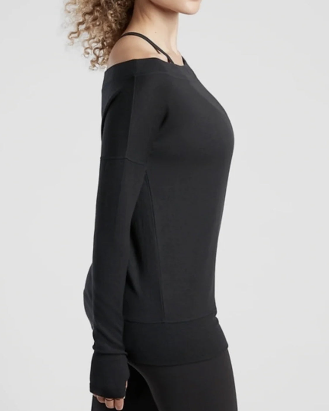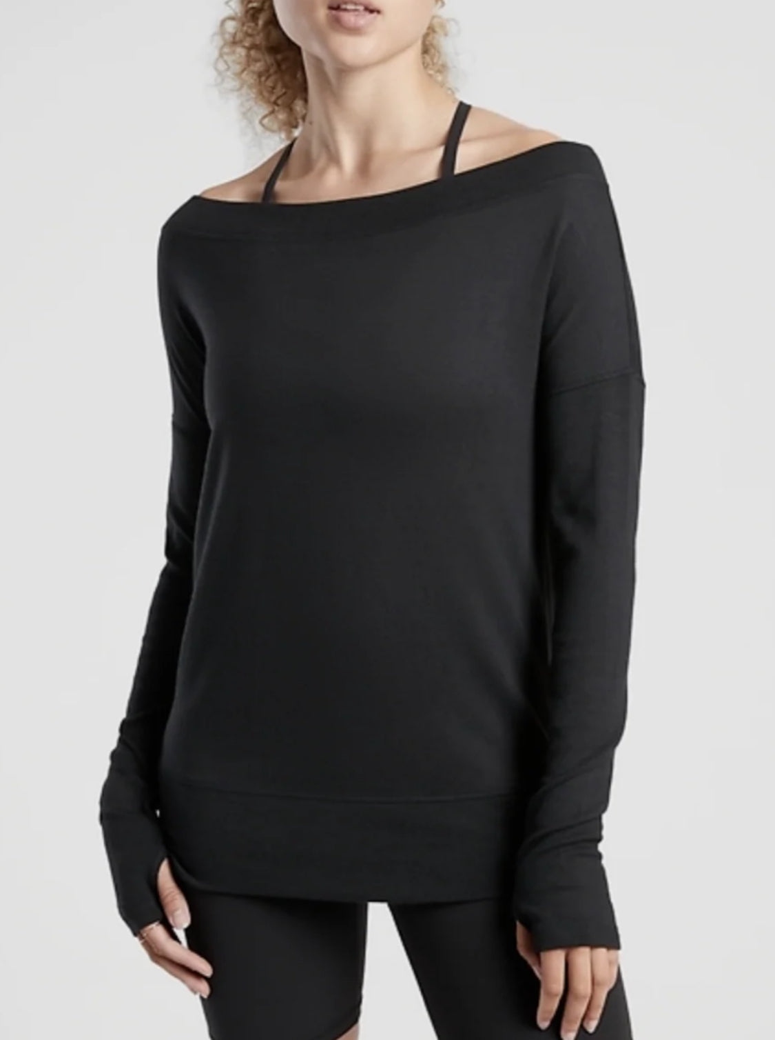 - FAVE: Off-shoulder design layers perfectly with sport bras and tanks