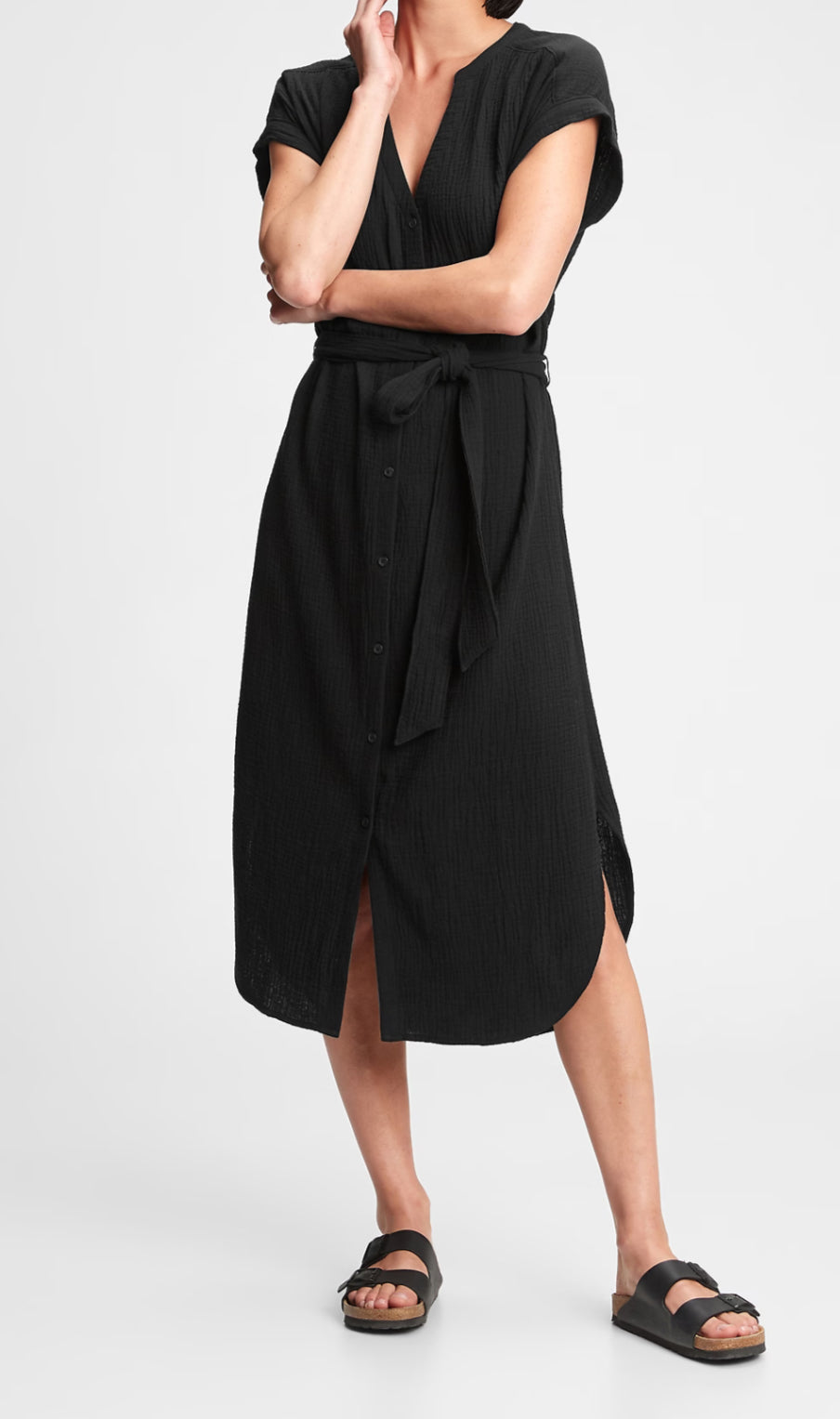 GAP Crinkle Gauze Midi Shirt Dress